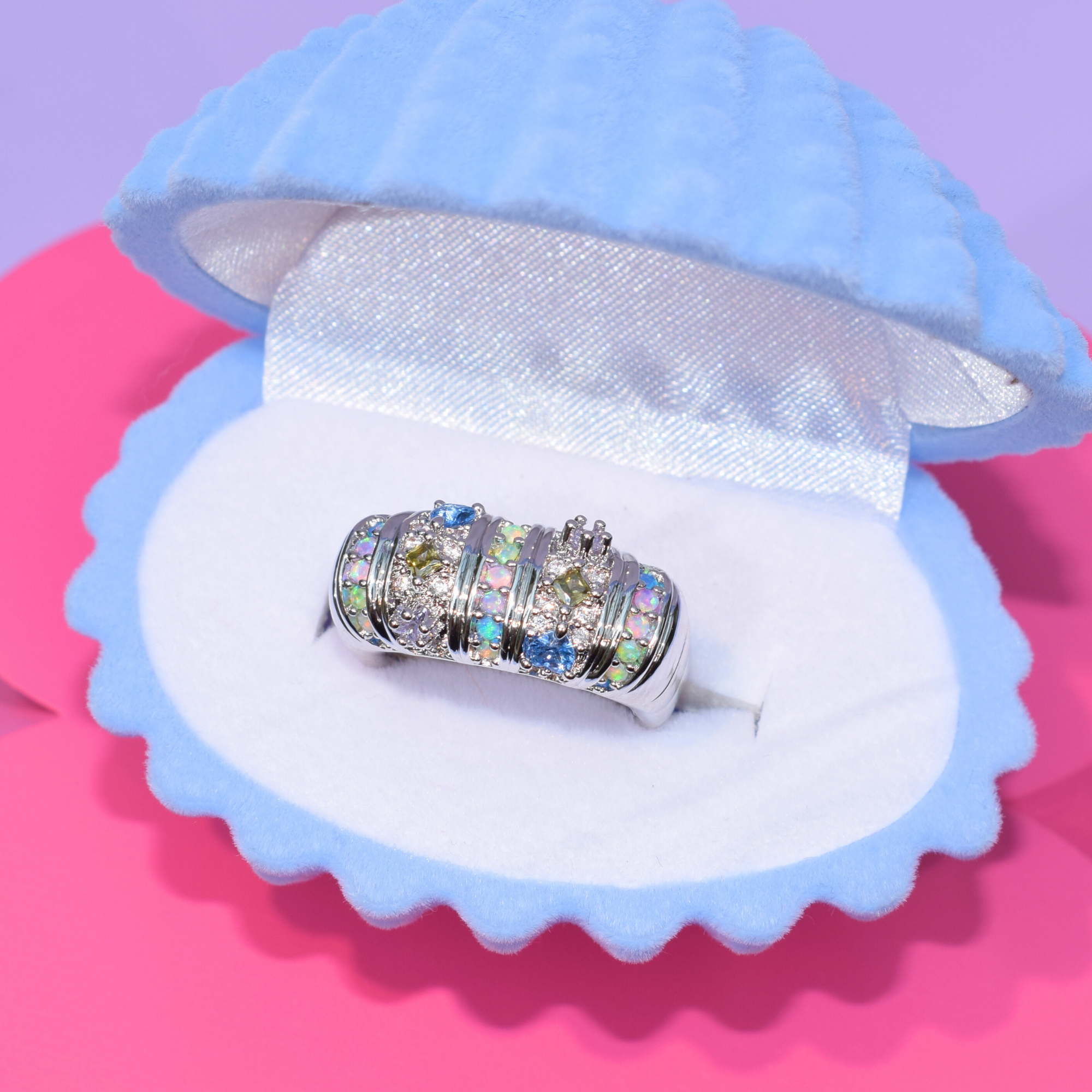 Say hello to Ice Queen, the silver version of our bestselling Royalty Ring! With cool tones and a mix of synthetic opal and CZ stones, this ring is the long-awaited version of a fan favourite. Match it with our Lucky Ice Queen Earrings for a look that’s fit for royalty!