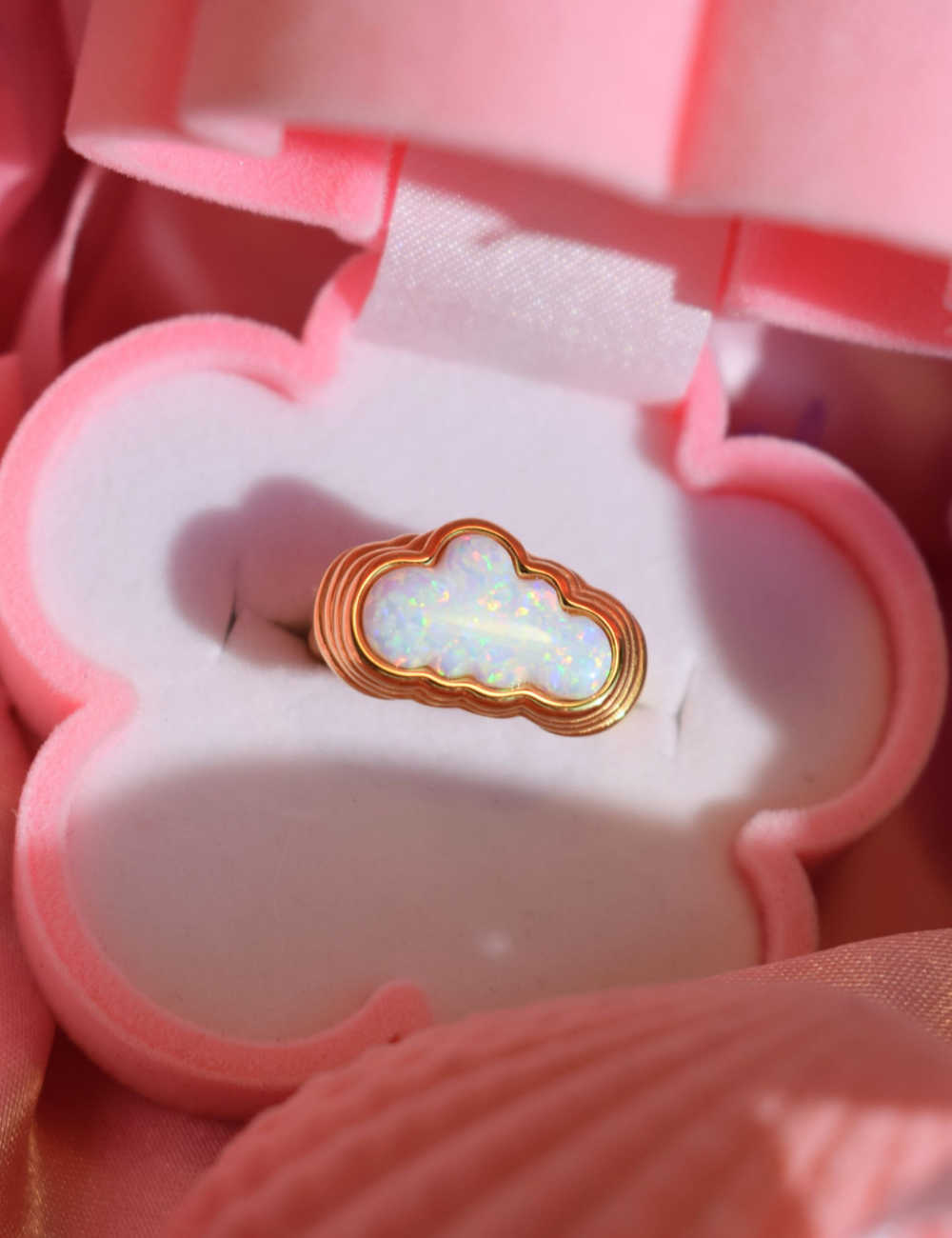 You’ll be on cloud nine when you discover our Opal Cloud Ring from Daughter by July Child. Made from 18k Gold with a fluffy Opalite cloud. Catch the cloud as it sparkles in the sunshine and know that it’s okay to have your head up in the clouds, it led you here, obviously.