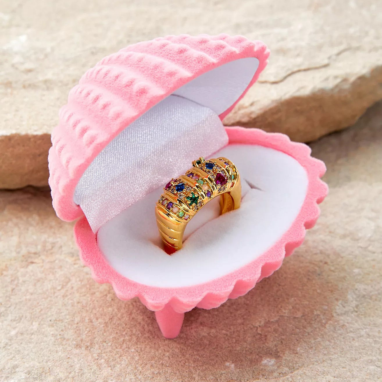 Act like the queen you truly are with our Royalty ring. This showstopper is 18K gold plated, encrusted with multi-coloured synthetic opals and crystals that catch the light and put all eyes on YOU. Perfect for when you need to make an entrance at a fancy event or anytime you just want to feel like a real life princess.