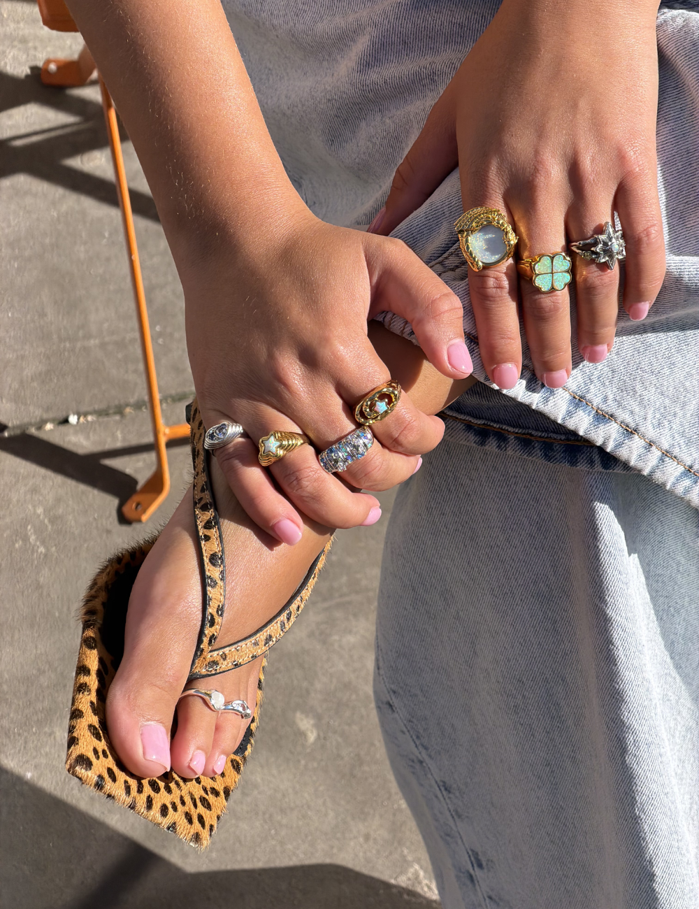 Something we don't talk about enough is that we're complete nerds over at July Child. If it doesn't have dragons, we don't want it. These fiery earrings sparkle like dragon treasure. The Dragoon Ring brings dragon scale attitude with glowing, enchanted energy. Think firelit caves, shimmering treasure piles and main character power moments. Wear it whenever you want to feel fierce and impossible to ignore.