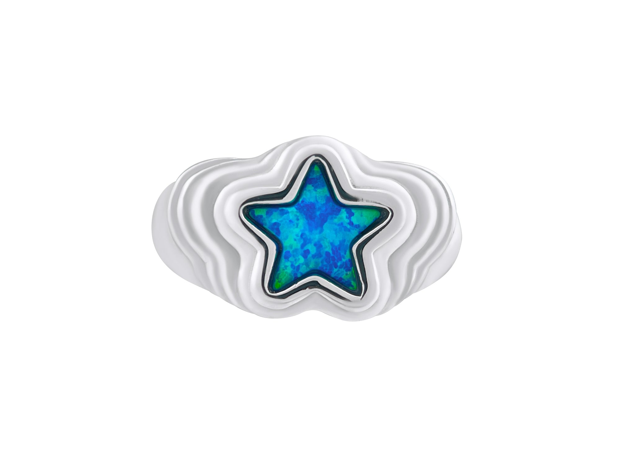 Our Starstruck Blue Opal Silver Ring matches the sparkle in your eyes. Shine bright like the night sky with semi-precious opal star gems and silver shapes. Now close your eyes and make a wish.