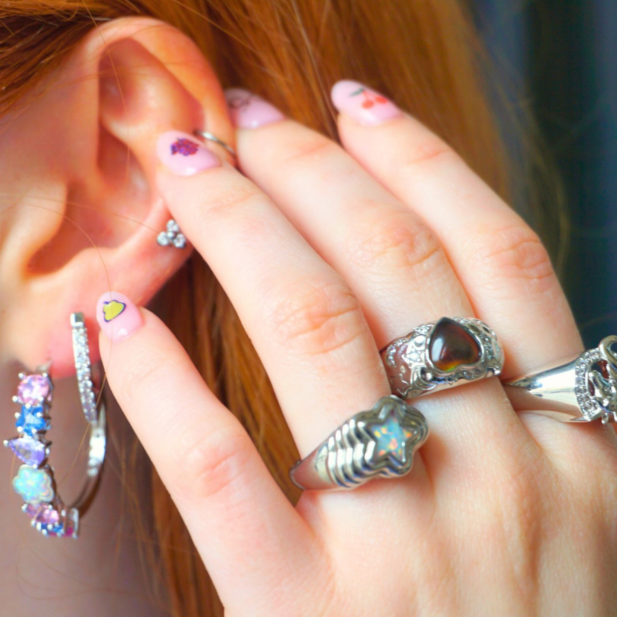 Our Starstruck Opal Silver Ring matches the sparkle in your eyes. Shine bright like the night sky with semi-precious opal star gems and silver shapes. Now close your eyes and make a wish.
