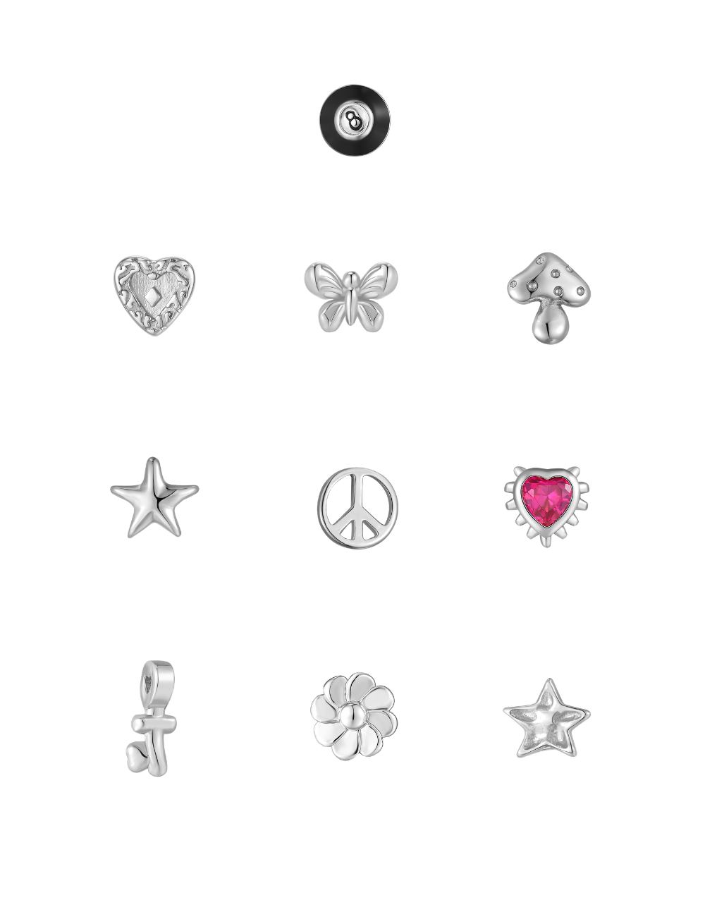Our Trinket Ring is designed to hold your tiny treasures. Featuring a clear heart stone centrepiece, this ring lets you tuck in delicate charms inside and see them sparkle through the surface. It comes with a set of tiny trinkets and a range of colourful cz stones to tuck away.